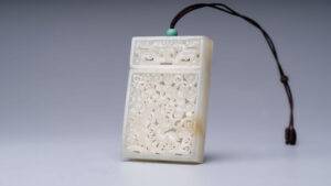 十七世紀 白玉雕喜上眉梢詩文牌(子岡)