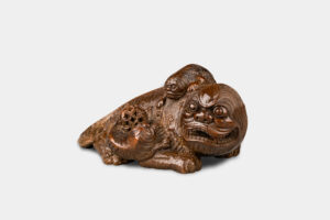 清中期 帶皮黃玉巧雕載來花甲鼻煙壺