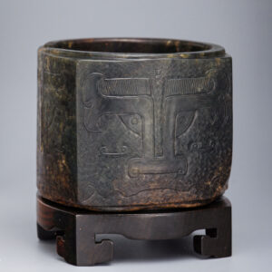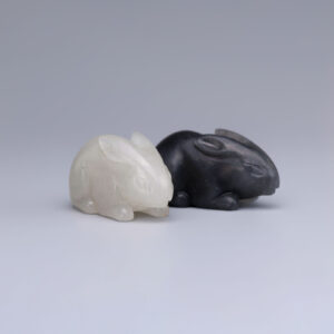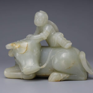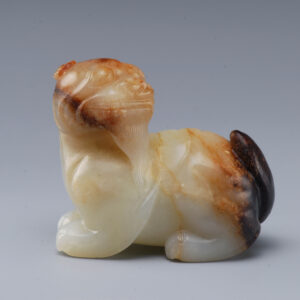 清乾隆 白玉帶皮圓雕子母瑞獸