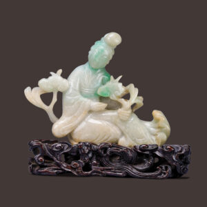 清代 翠玉蒼龍教子花瓣鈕帶勾