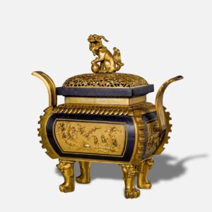 十八世紀 銅鎏金開光高士圖朝冠耳爐