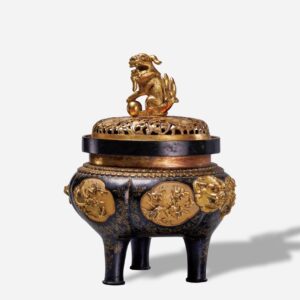 十八世紀 銅局部鎏金開光獅耳爐