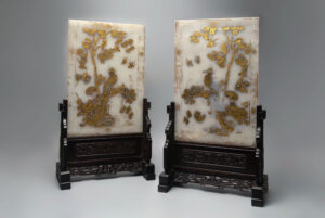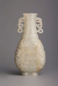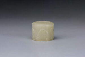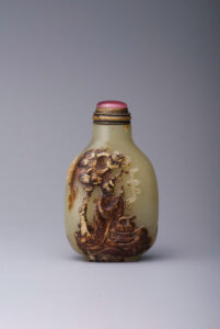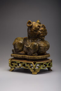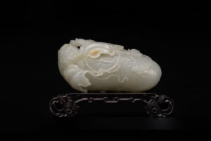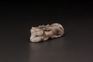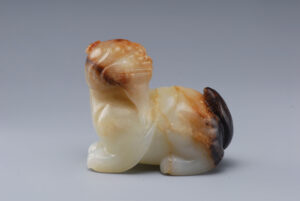 清乾隆 白玉帶皮圓雕子母瑞獸