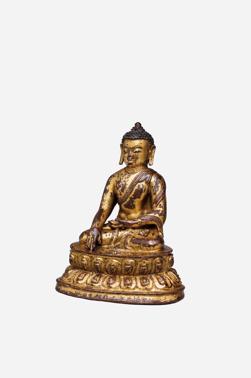 明宣德 銅鎏金阿閦佛坐像(宣德元年三月初十日賞)