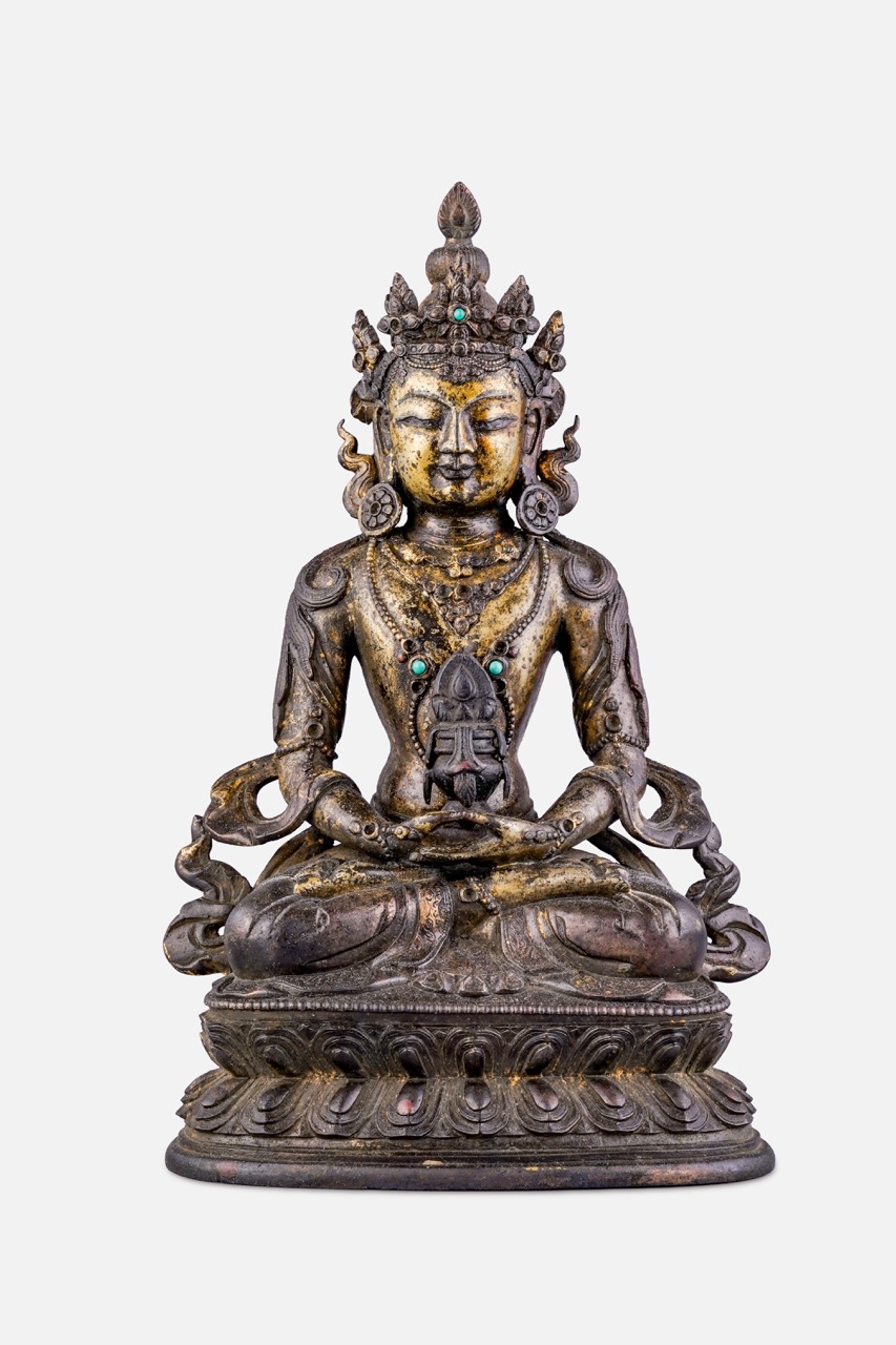 清早期 銅鎏金長壽佛坐像