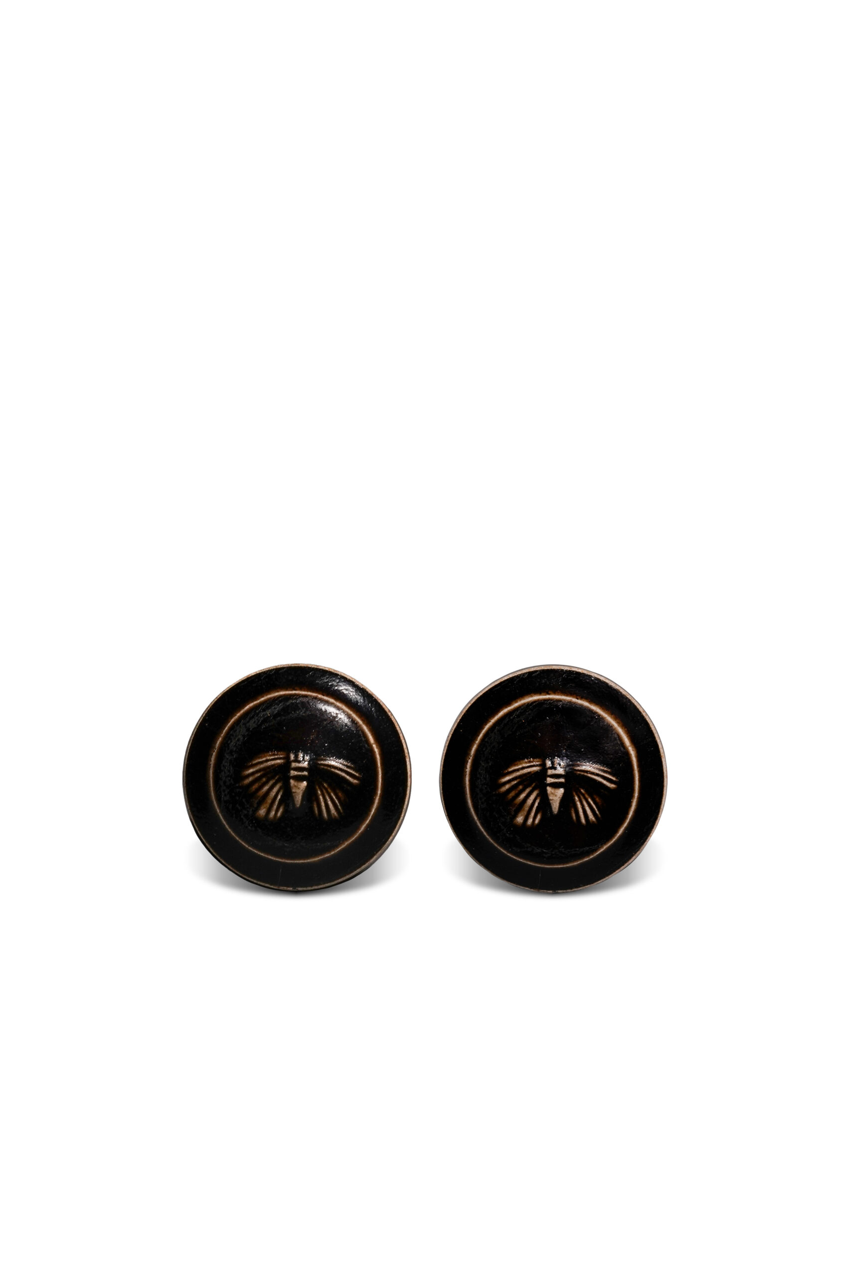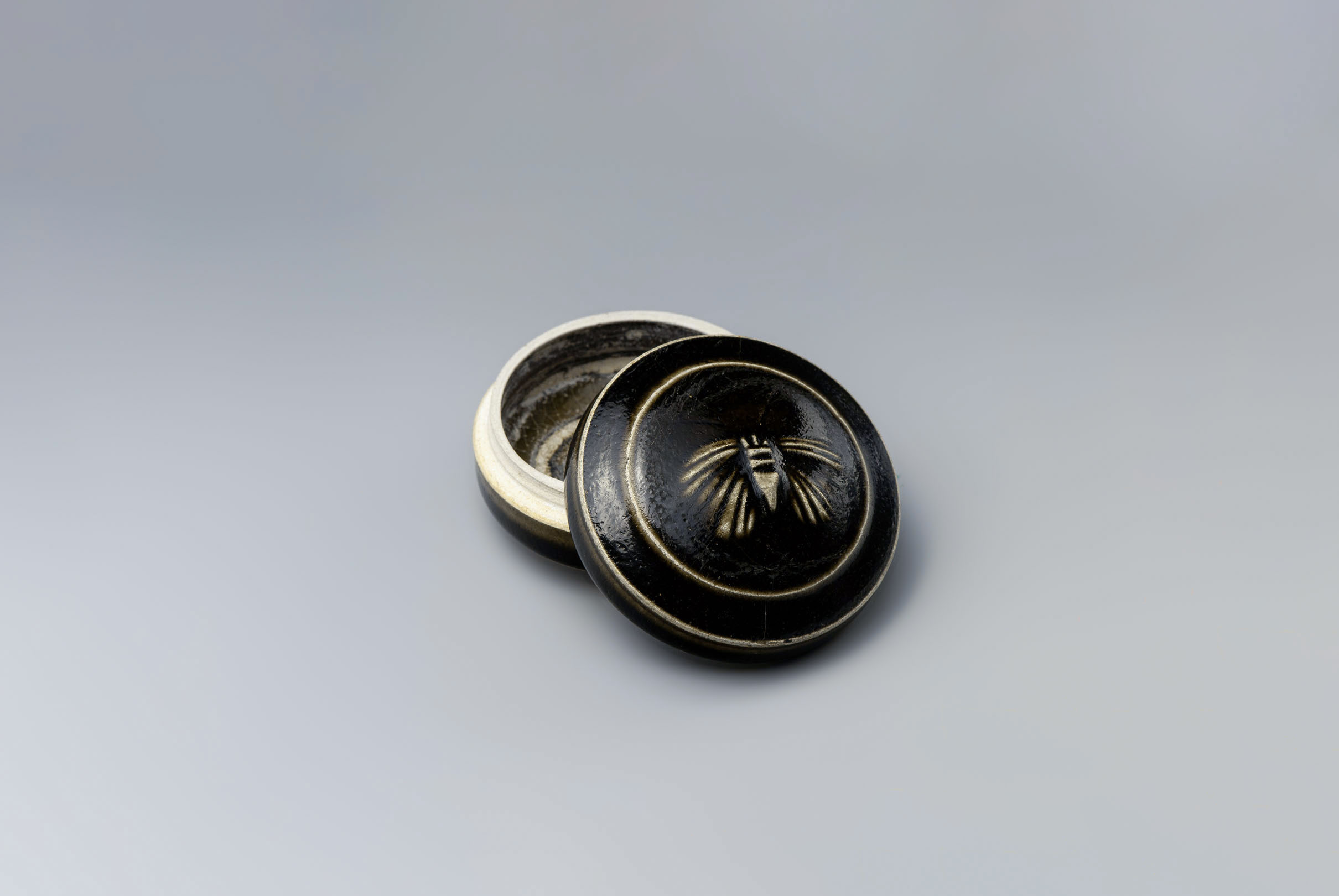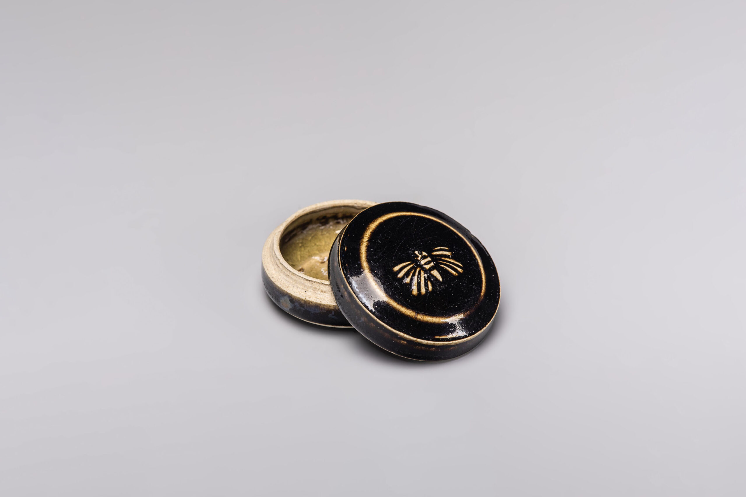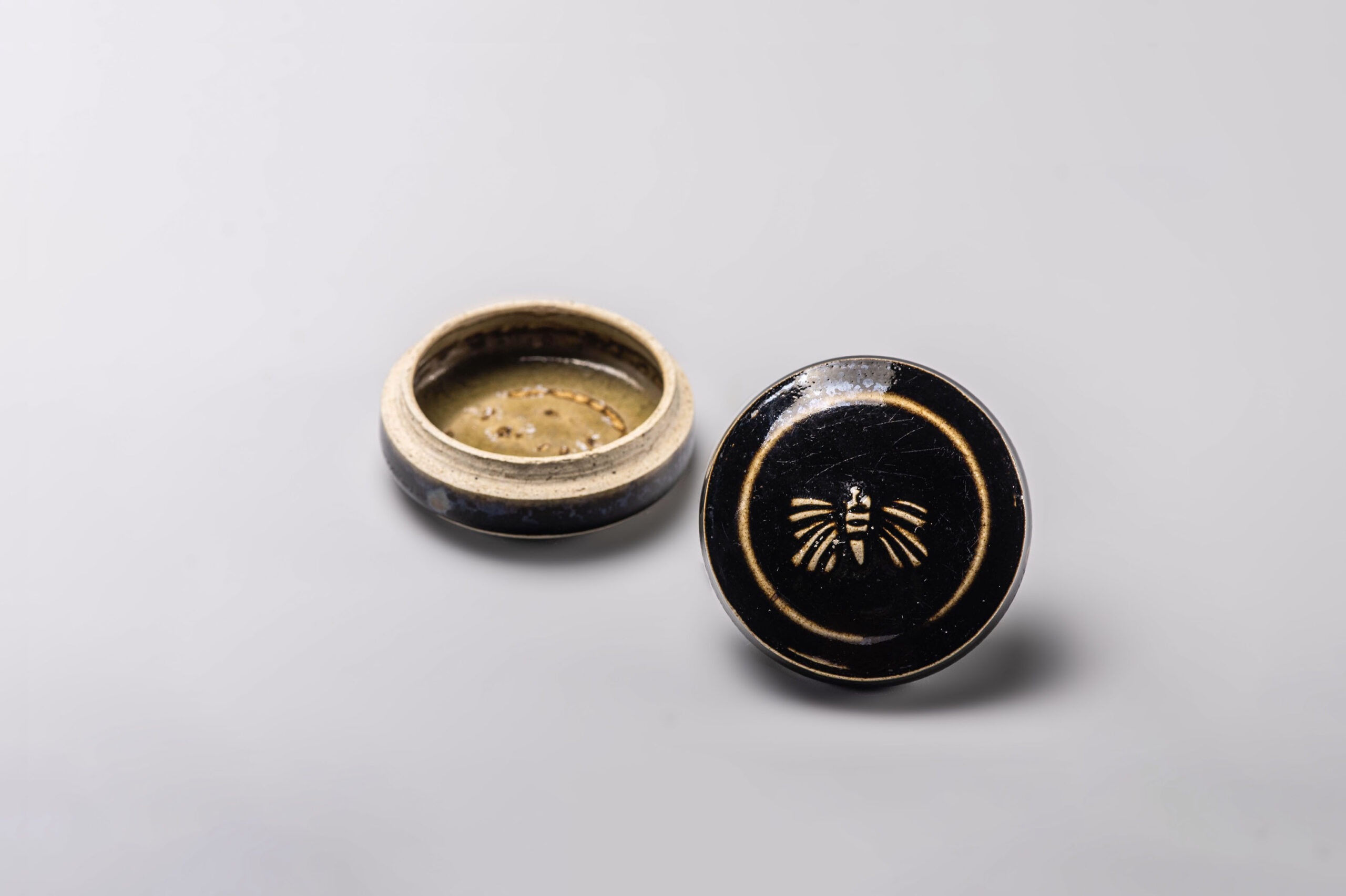 唐代 相州窯黑釉蝶紋香盒一對 尺寸:W5.9cm