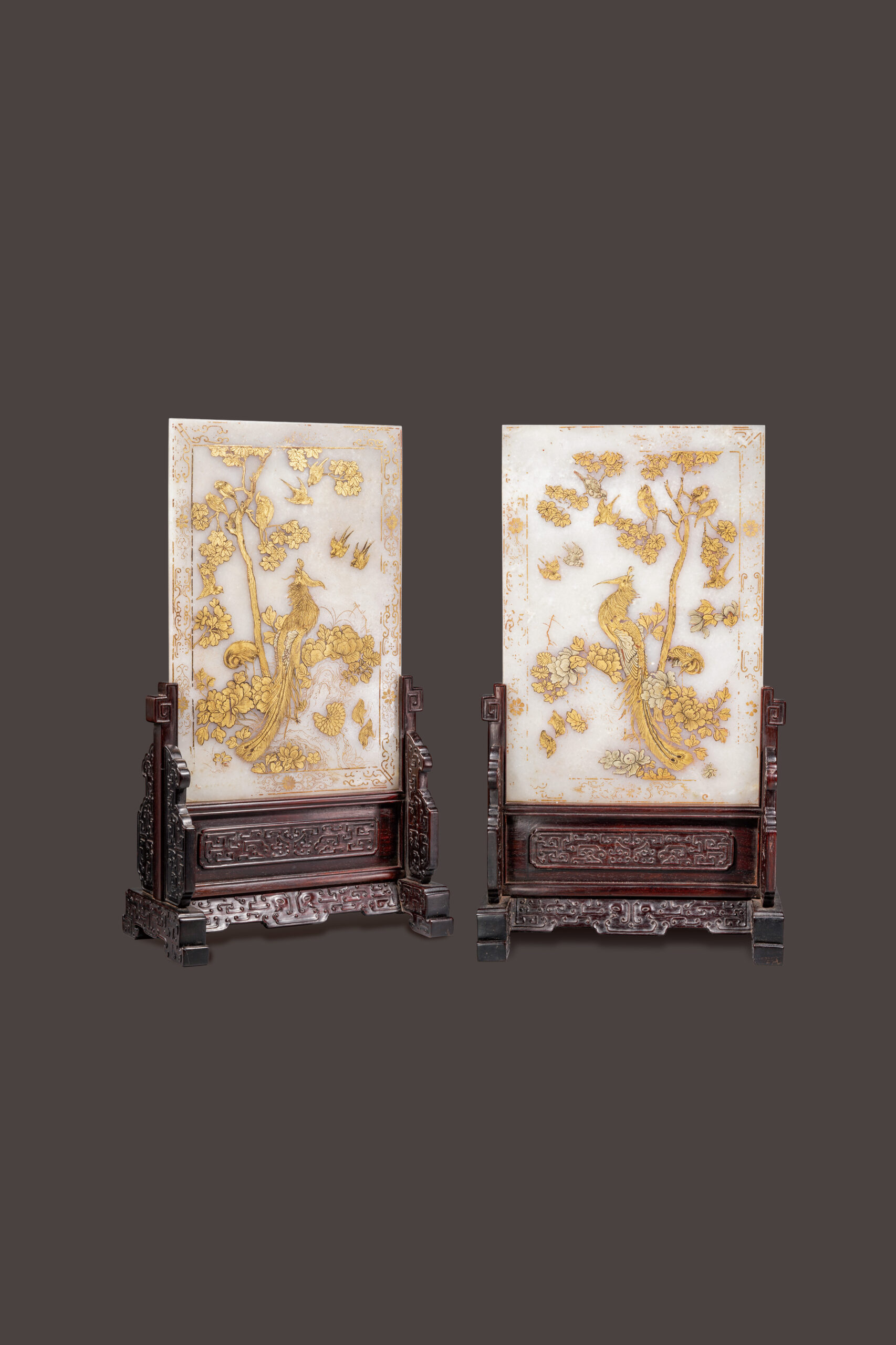 屏風是中國最古老的傢俱之一,目前所知最早的玉插屏見於東漢,流行於明清。器形較小的插屏常置於案或几上,除了裝飾性作用,美化空間,更能與其他文玩器物相伴,無論字畫、彞鼎、瓷瓶器物,都能起到烘托之效,也因此深得古代文人雅士的青睞與重視。