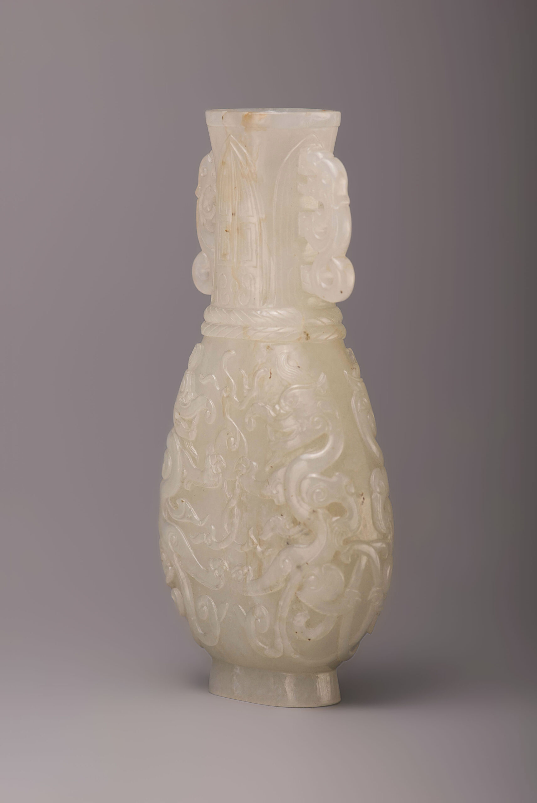 清中期 白玉雙龍耳龍紋瓶 尺寸:H13.8cm