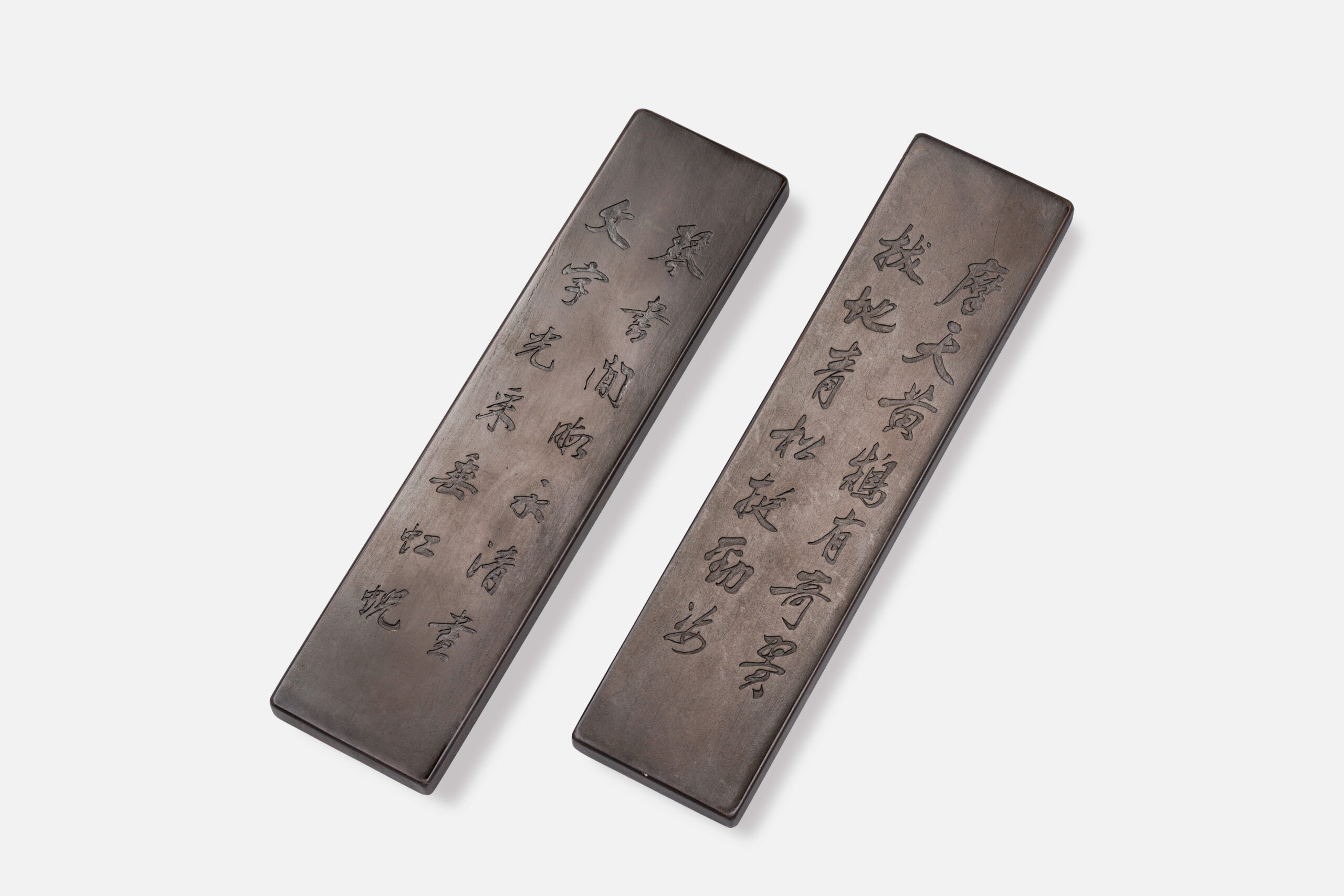 清中期 端石人物詩文紙鎮一對(梅峰款)