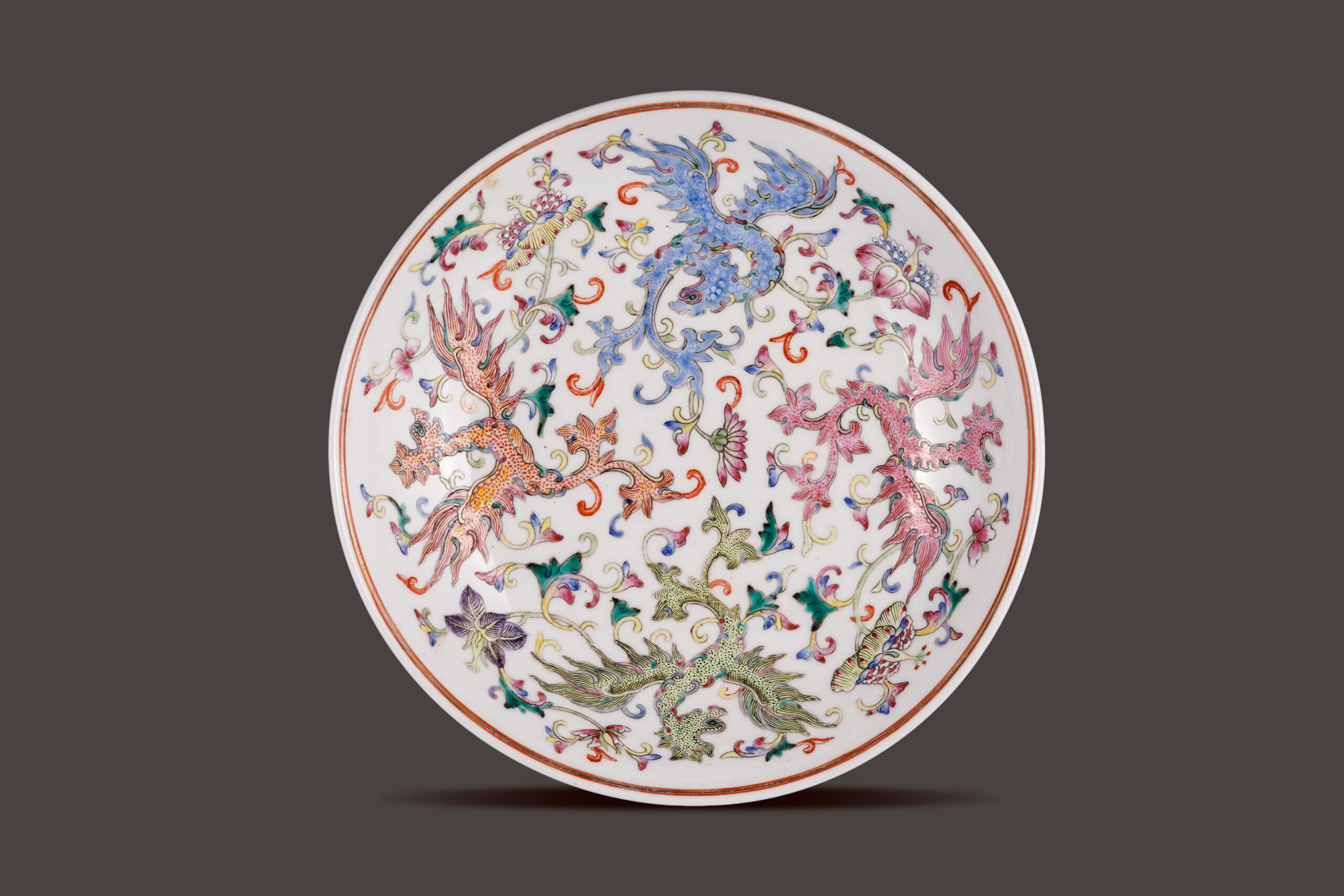 清中期 粉彩夔鳳紋盤
