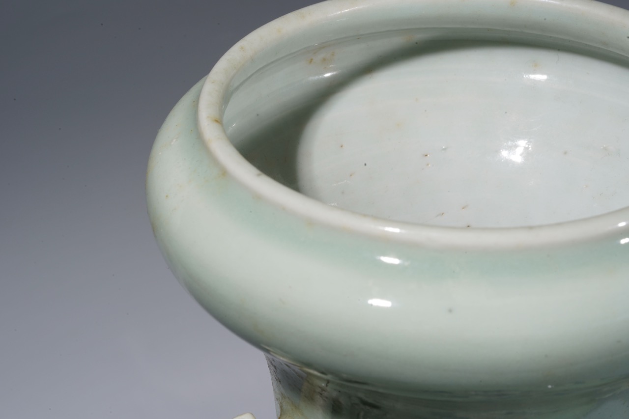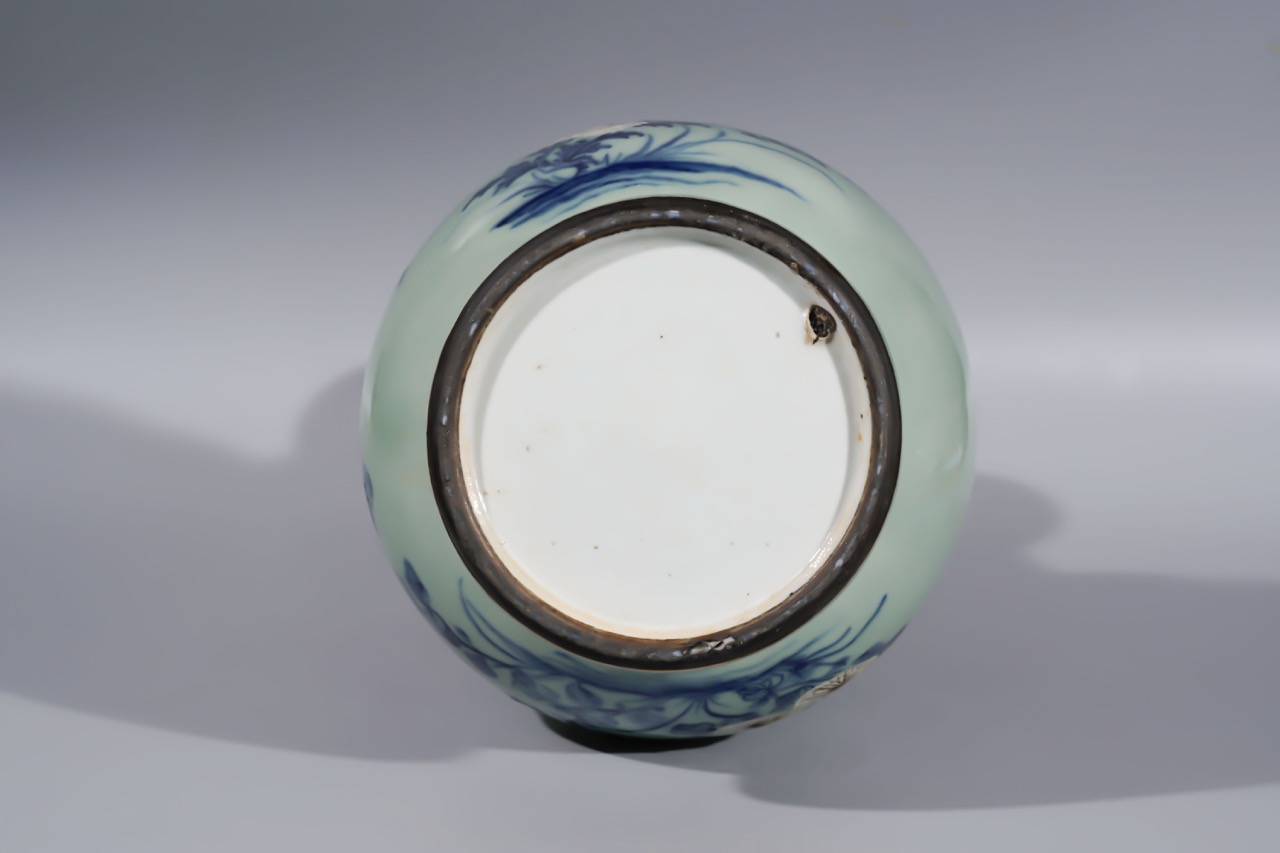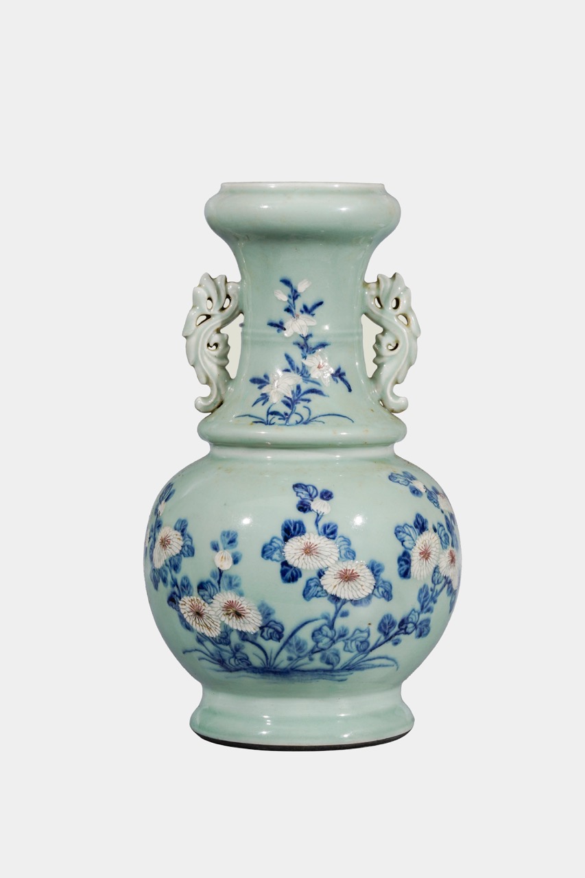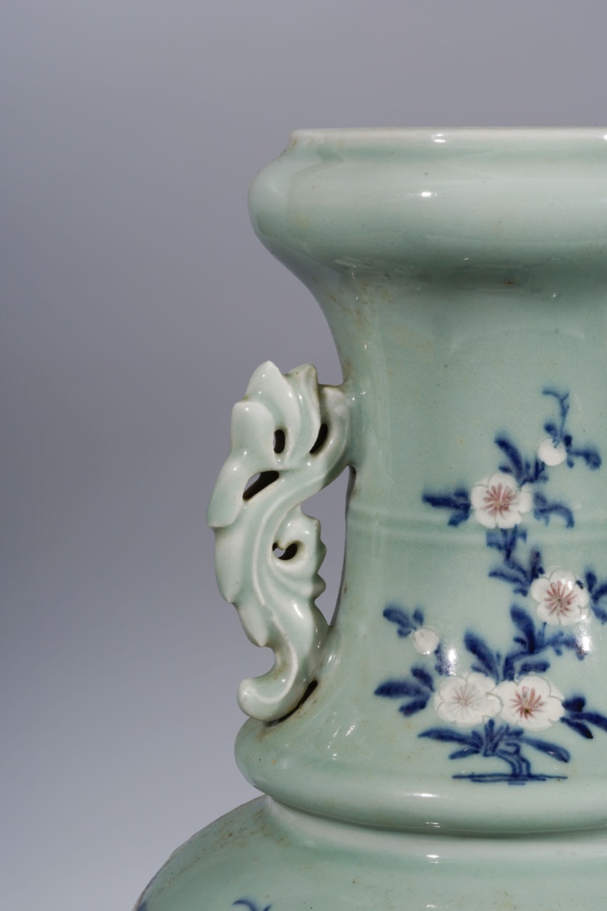 / 清中期 豆青青花釉里紅花卉紋蒜頭瓶