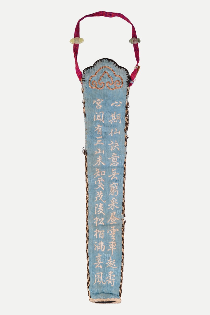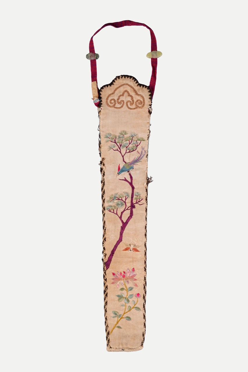 清 刺繡綬帶鳥詩文扇套