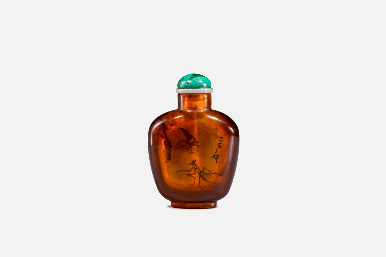 / 清 琥珀內畫昆蟲圖鼻煙壺(二仲款)