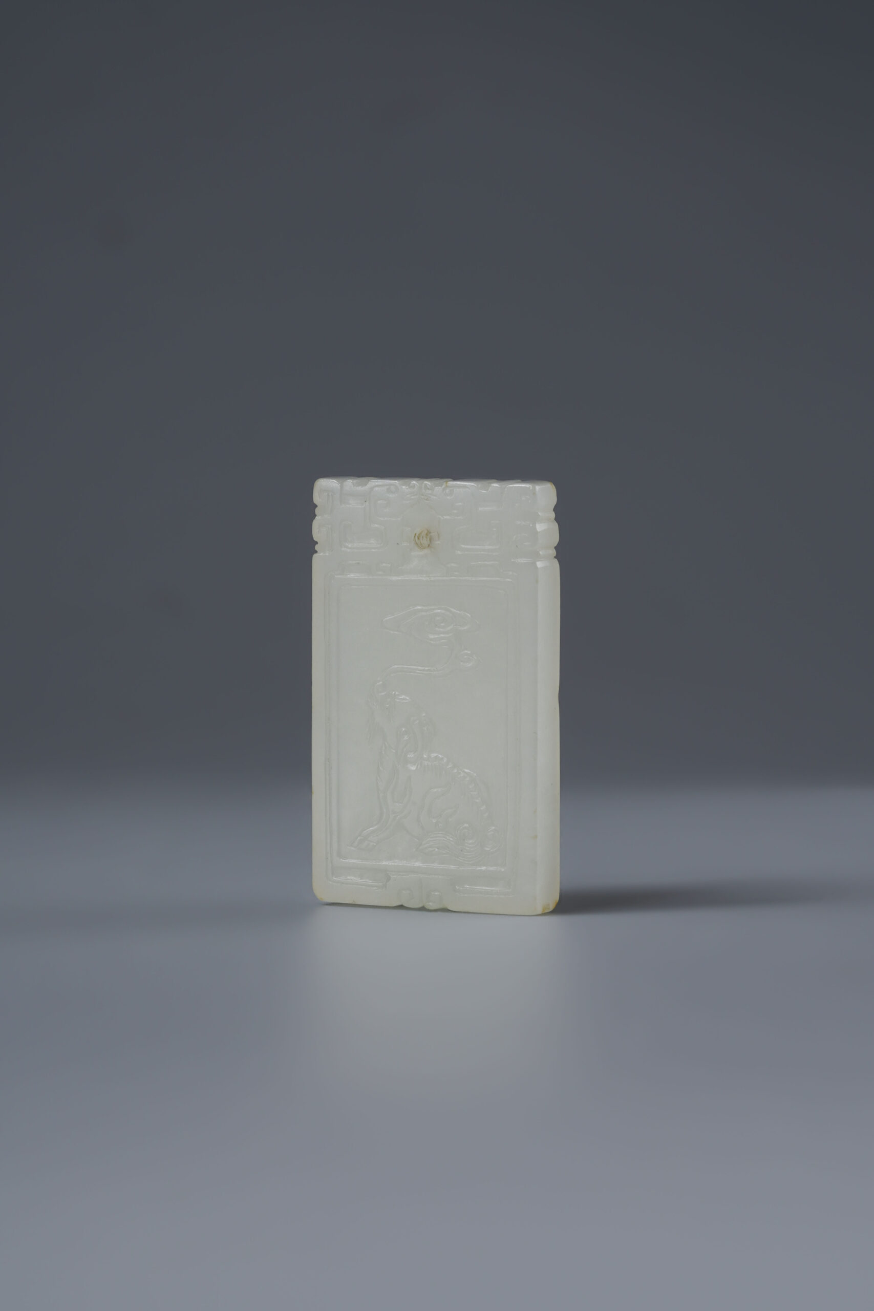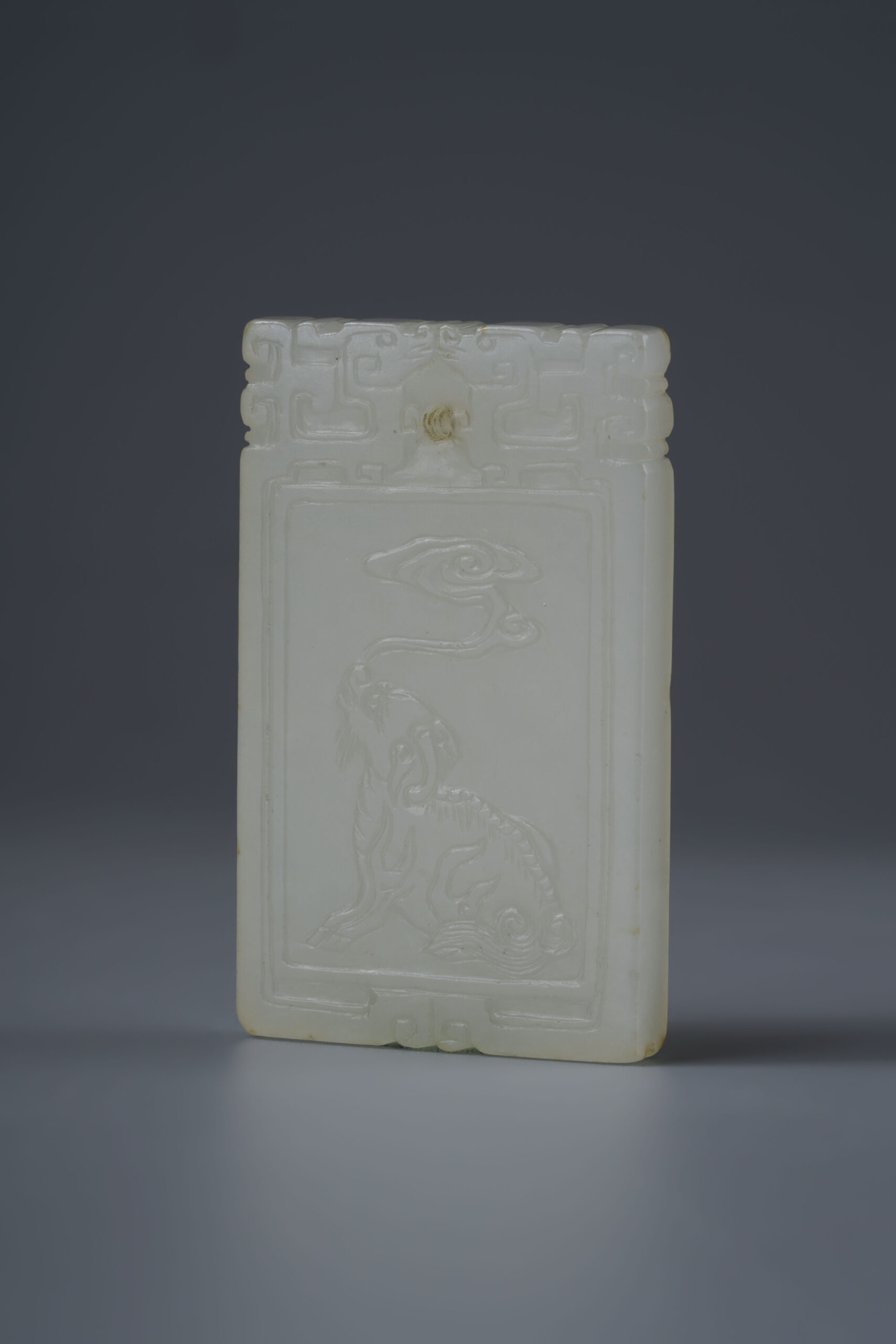清 白玉狻猊珮 尺寸:H3.8cm,W2.3,D0.5cm