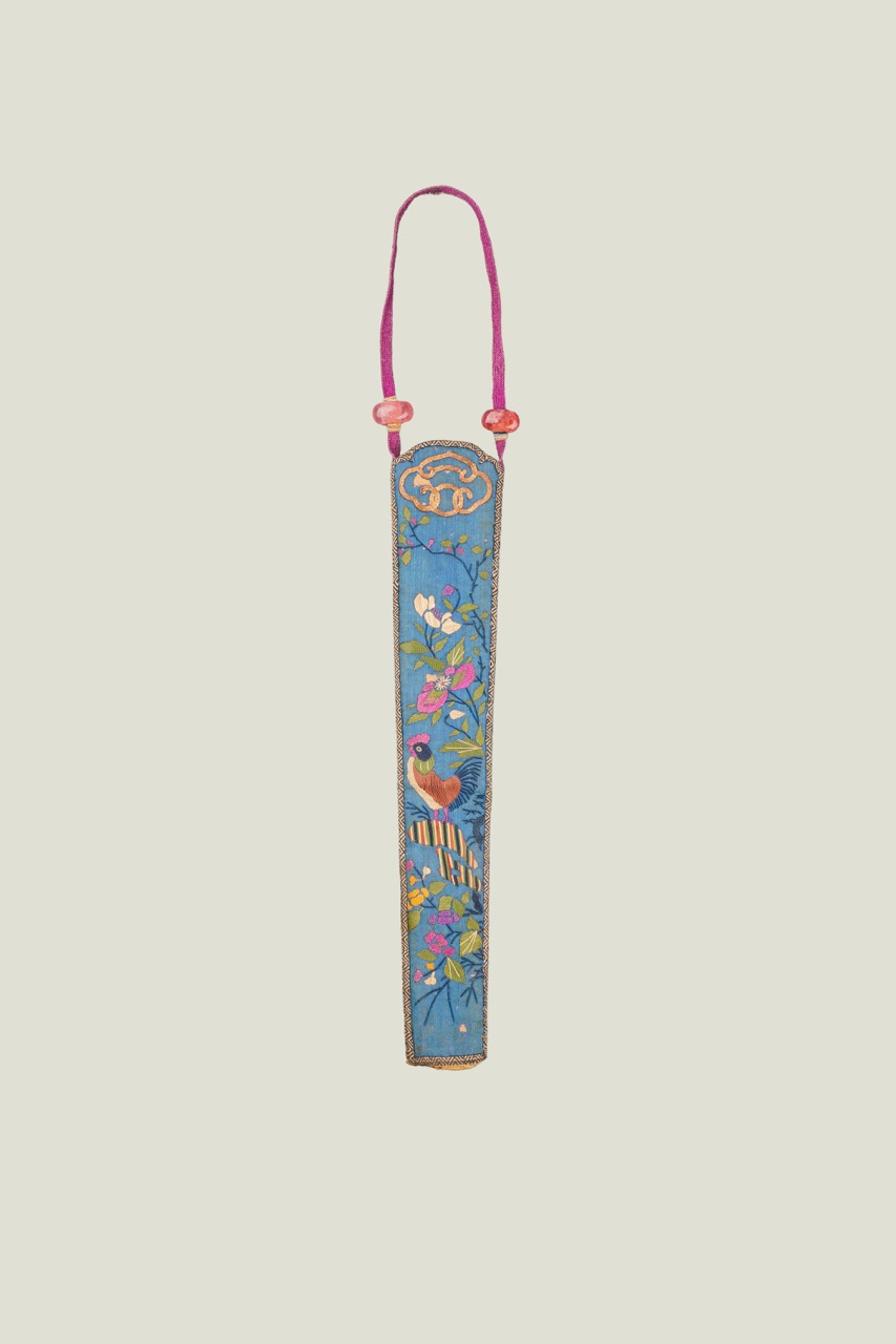 清 金雞圖刺繡扇套