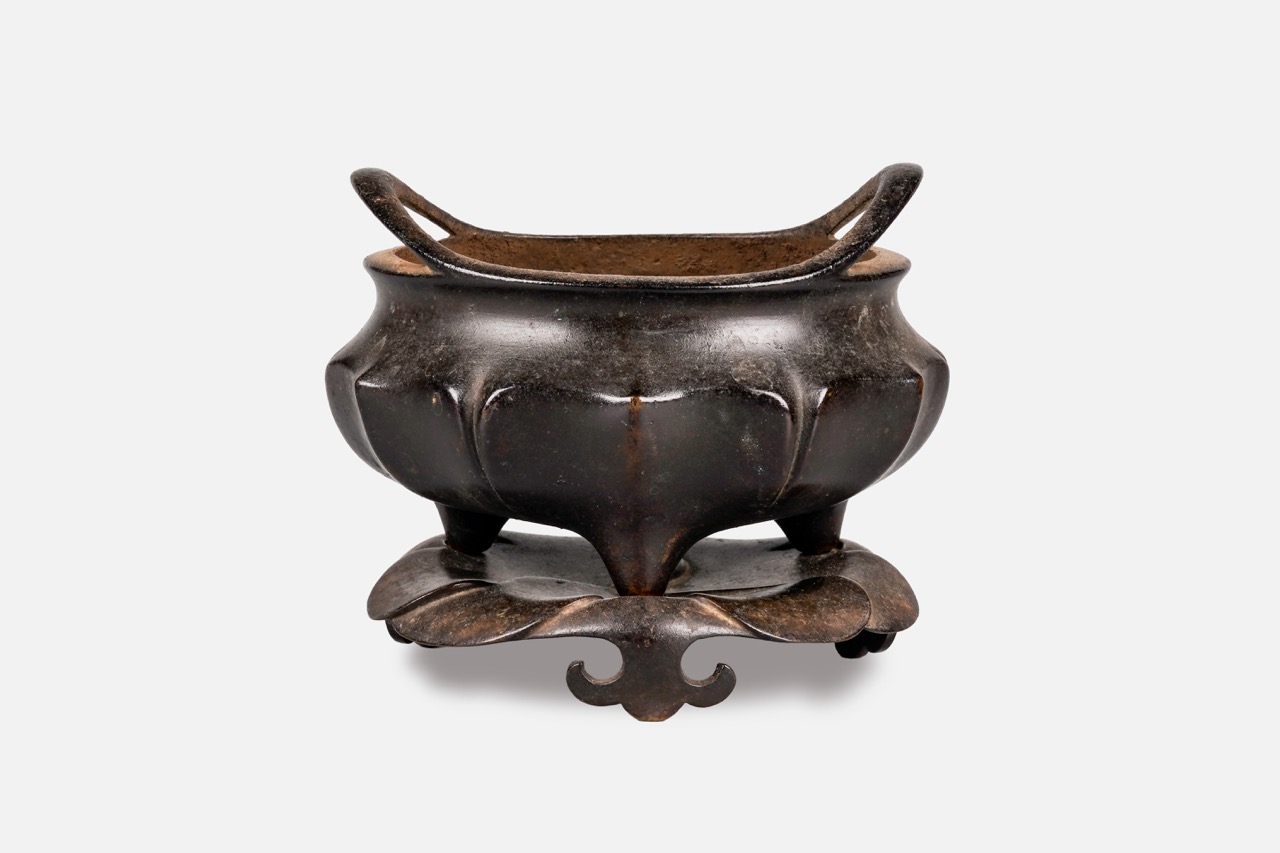 清 銅葵瓣橋耳爐